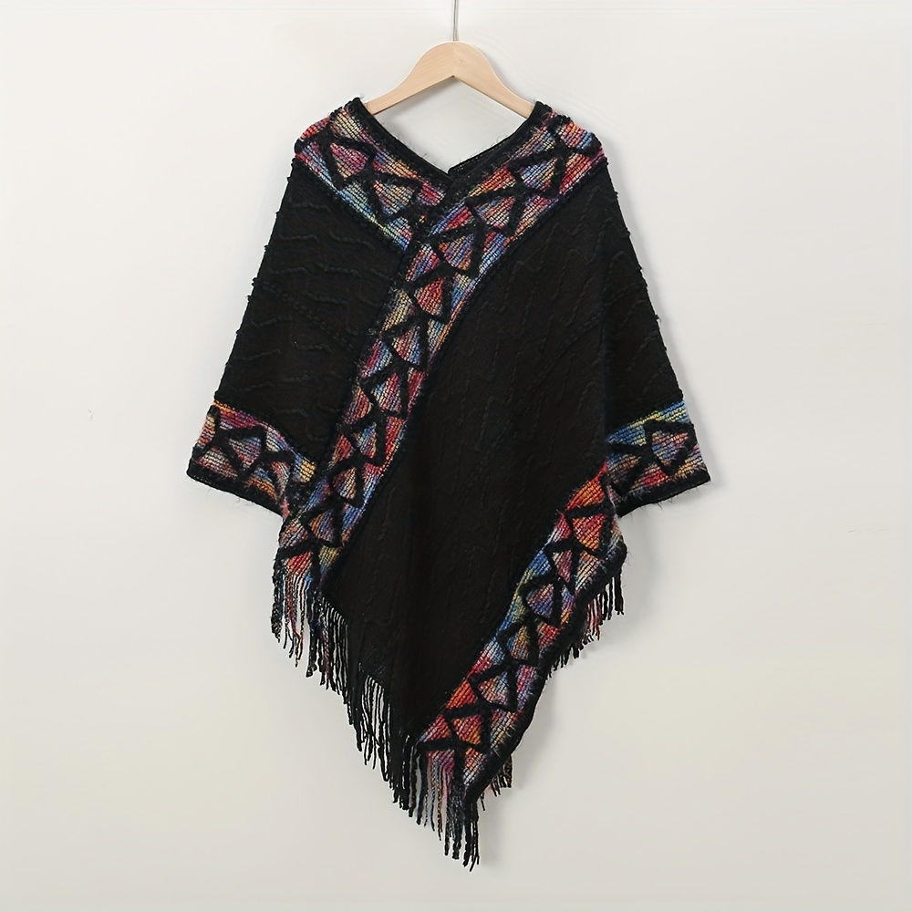 TEMU 보호 시크 아크릴 숄, 기하학 패턴, 성숙한 행사용 통기성 따뜻한 장식 랩, 여행 및 해변 사진 액세서리, 세탁기 사용 가능