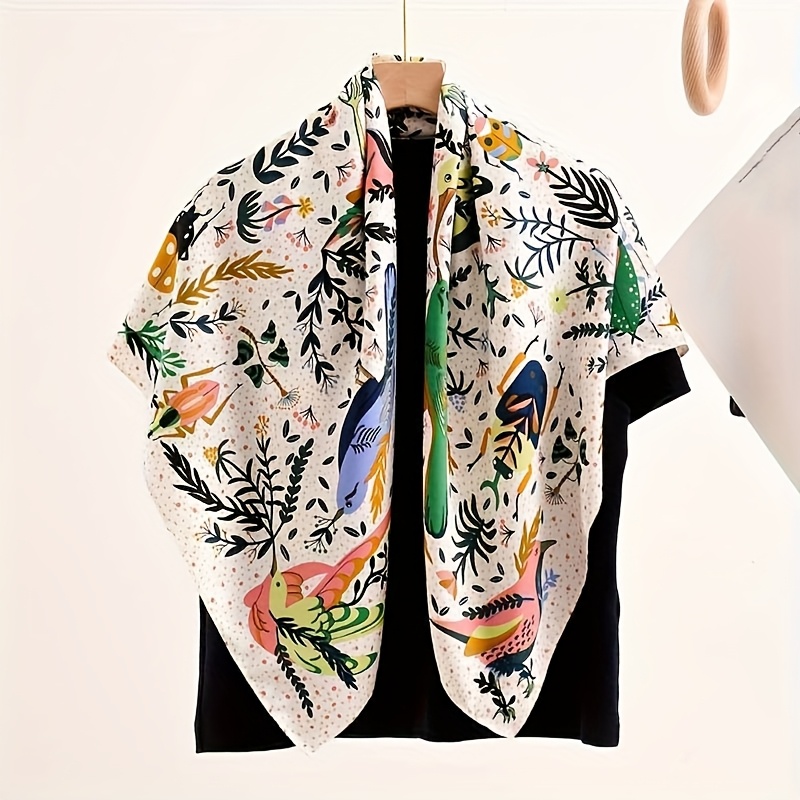 TEMU 여성용 우아한 열대 꽃과 새 프린트 스카프 - 파티, 데일리웨어, 격식 있는 행사에 적합한 가볍고 통기성 좋은 사각 넥스카프 & 헤어밴드 - 봄, 여름, 가을용 선물, 그린, 블루, 오렌지, 핑크, 블랙 패턴