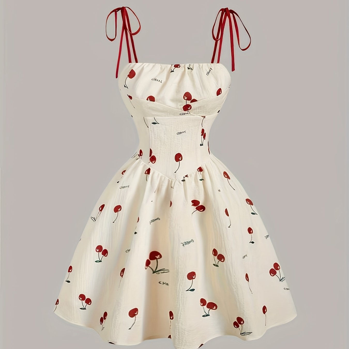 TEMU 우아한 리틀 체리 프린트 캐미솔 원피스