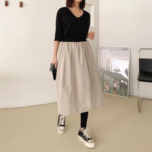 [옷자락] 여자 밴딩 벌룬 절개 포인트 치마레깅스