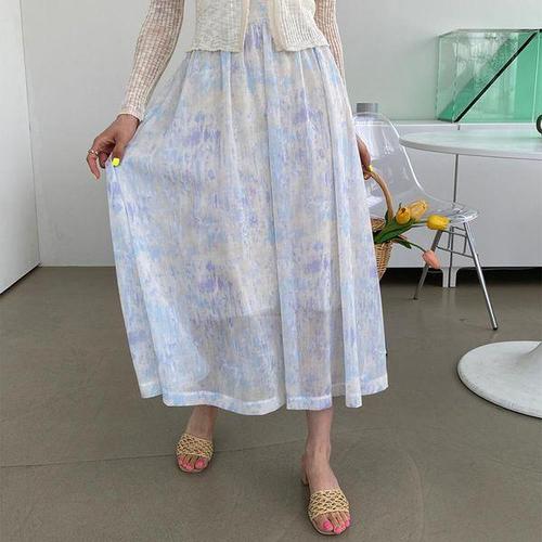 [다잇템]여자 엷은 비침 물나염 롱 백밴딩 스커트