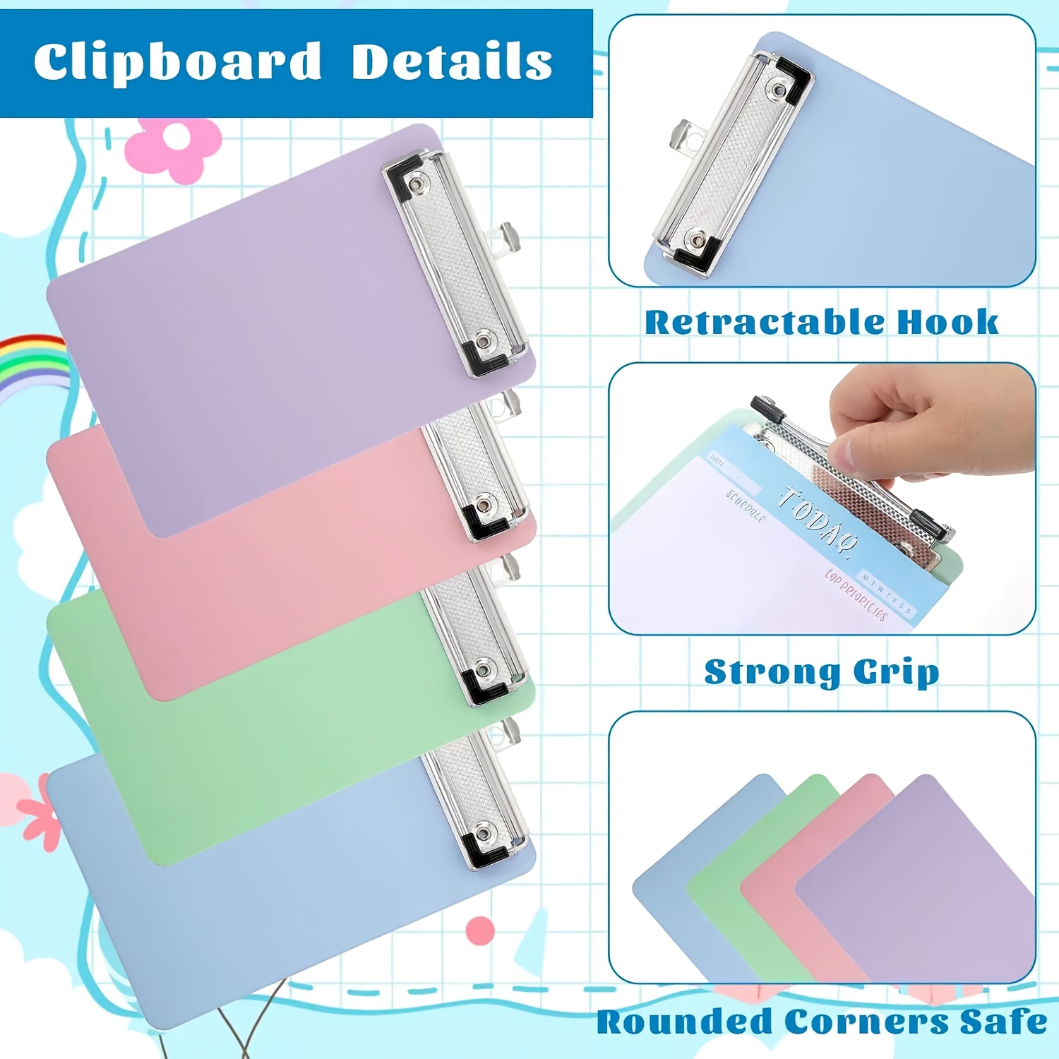 TEMU [4개입] 플라스틱 컬러 미니 클립보드, 저소재 클립 쓰기 보드 18.5X12Cm A6 클립보드 (사무실, 학교, 가정 또는 교실 야외 사용)