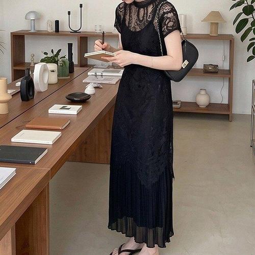 [핑크엘리제]블랙 치파오 시스루 페미닌 케러파파원피스