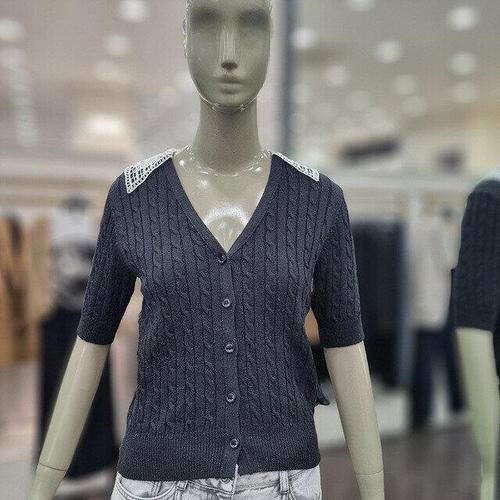 [시슬리]레이스 카라 케이블 니트 (SAKC42531 블랙,아이보리)_DJ