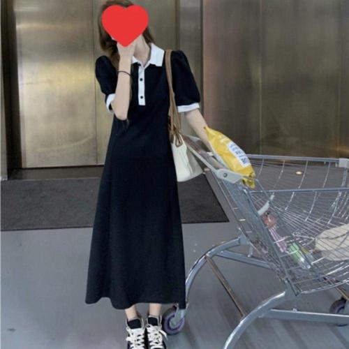 배색 카라 여름 반팔 여성 롱 원피스 데일리 오피스 하객룩 WFLLQSD
