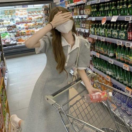 [오너클랜]인기상품 이쁘다요 심플 롱 원피스 반팔 배색카라 무드 [WFLMPLM_260419]