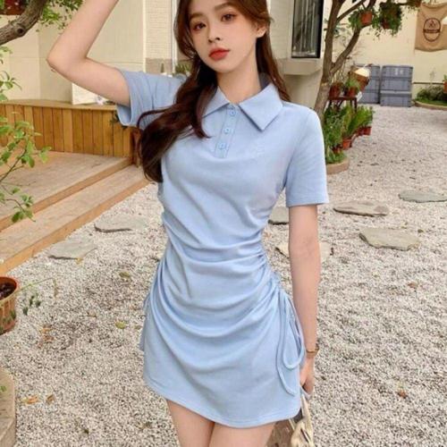 여성용 카라 반팔 슬림 미니 원피스 캐주얼 셔링 디자인 WFLLR5I