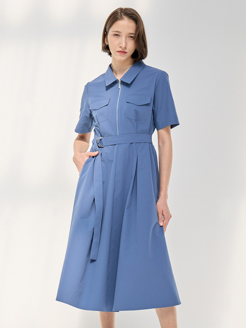 [마리앤어스] 벨로니 엠보 벨트 반팔 카라원피스