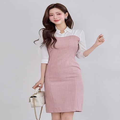 [다잇템]여성용 카라 빅사이즈 반소매 내추럴 쿨 원피스