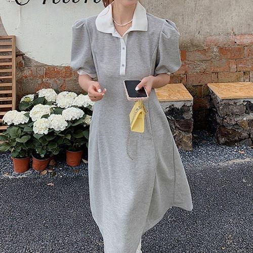 퍼프 숄더 카라 반팔 롱원피스 면 하객룩 원피스 WFLSRM2