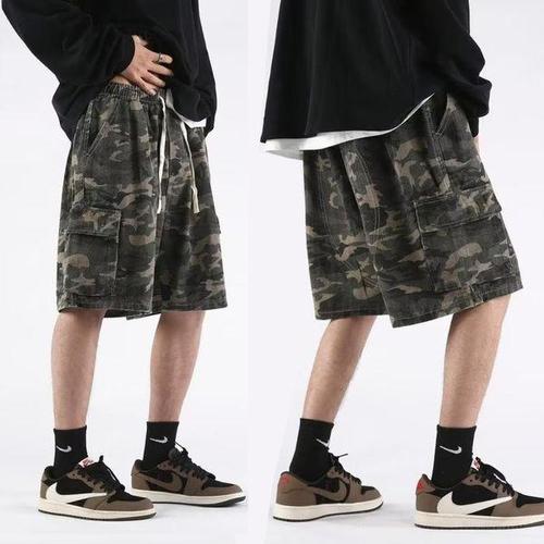 Asure 여름 카무플라주 남성 반바지 루즈핏 카고바지