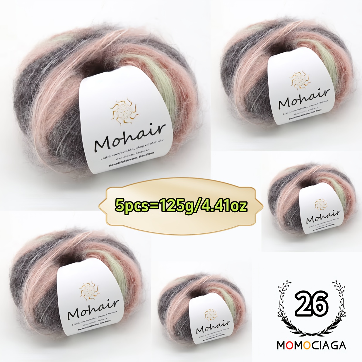 TEMU 모모시아가 핸드염색 모헤어 실 5롤 - 옴브레 그라데이션 컬러 크로셰 실, 부드러운 모헤어 소재로 스웨터, 쇼울, 모자, 스카프, DIY 공예에 적합, 컬러 체인징 실