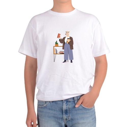 길단 아시아핏 반팔티 박사 교수 캐릭터 독서그림 다양한색상 WFKODB0