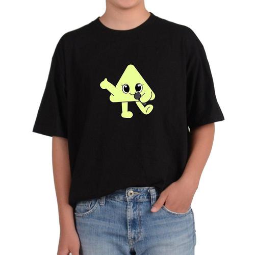 길단 반팔 USA핏 귀여운 삼각형 캐릭터 노래부르는 캐리터 형광그림 WFKOK6M