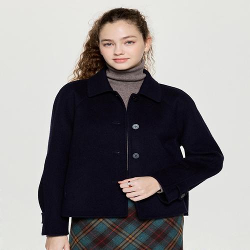 헤지스 여성 [캐시미어 블렌디드] 핸드메이드 숏 코트 네이비 (HSCO5D903N3)