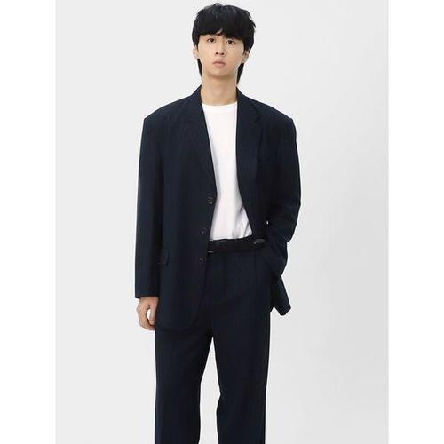 [빌리버스]남성 캐주얼 핀스트라이프 테일러 자켓 오버핏 수트 정장 세트 BYM017