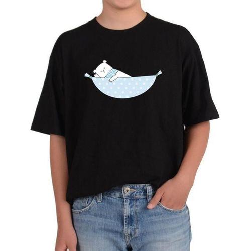[에이치플러스몰]오버핏반팔티 해먹에 있는 곰돌이 잠자는 곰 낮잠 야영 캠프 전사이즈