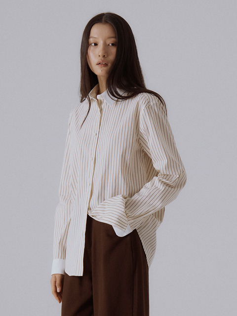 [실른] 히든 버튼 커프스 디테일 스트라이프 셔츠 (베이지 스트라이프)