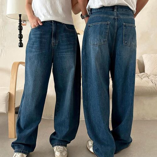 해피유통 남여공용 루즈핏 커플 스트레이트 캐주얼 데님 팬츠