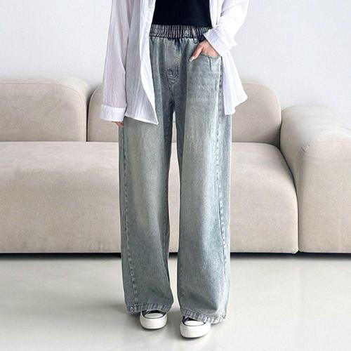 [다잇템][다잇템] 여자 워싱 콘트라스트 넓은 고무줄 남자 커플데님팬츠 청바지_23103579_588872