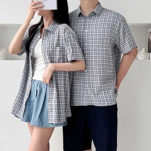 [에이치플러스몰]캐주얼 데일리남방 체크남방 남성 커플 데이트셔츠