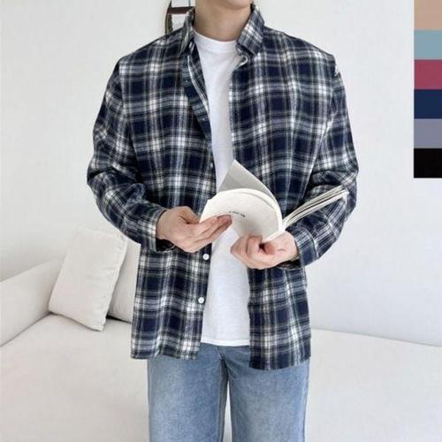 [옷자락]남녀공용 롱슬리브 박시핏 커플템 프레피 격자 셔츠