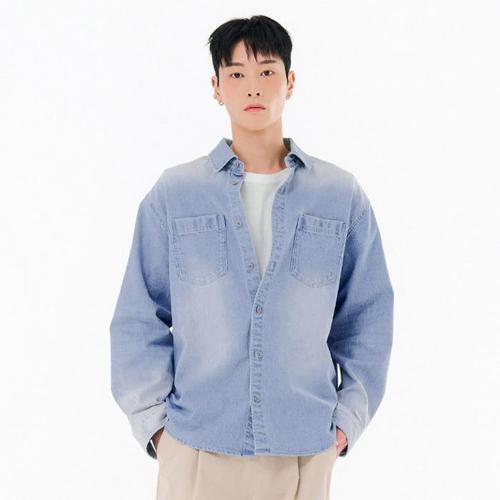 [골드스마일]커플 오버핏 데님셔츠 긴팔셔츠 아우터 베이직 청남방