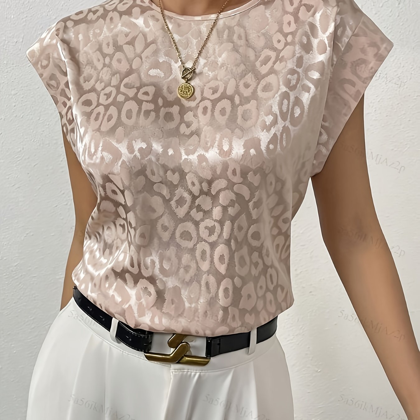 TEMU 방향성 패턴 노치넥 배트윙 소매 셔츠