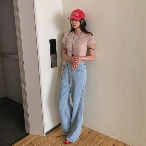 [다잇템][다잇템] 여자 H라인 면원단 넓은 랑새란 코지 라이트블루 진 일상룩 팬츠_24742587_588872