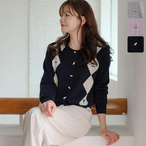 코트니 아가일 자수 니트 가디건