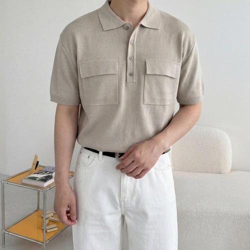 [모노폴로지]쿨링 투포켓 반팔 카라 얇은 여름 오버핏 단추 무지 탄탄한 니트 4color