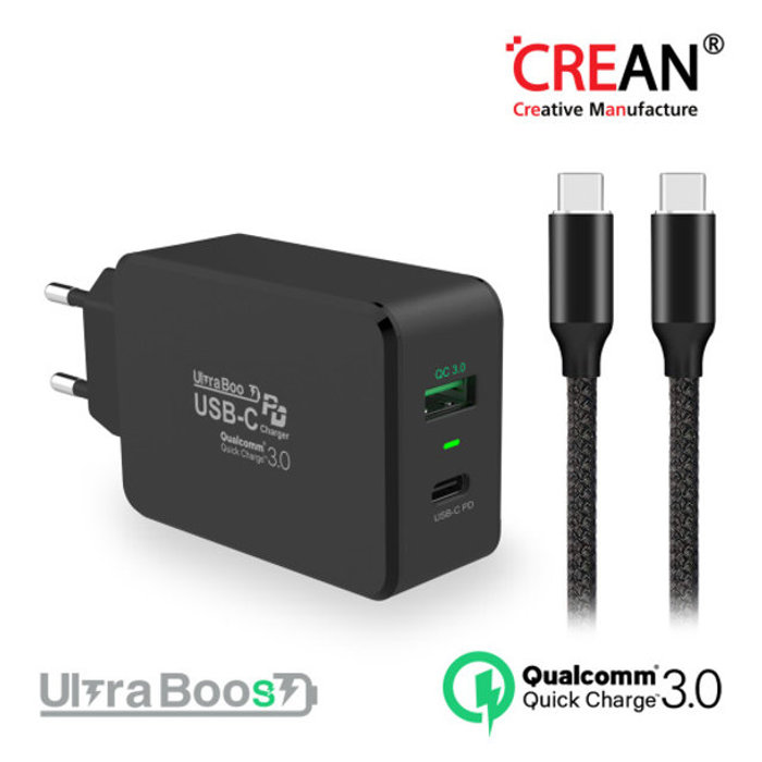 크레앙 크레앙 울트라부스트 33W PD 고속 충전기 (PA33) C to C 케이블 포함