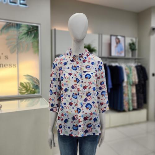 [크로커다일레이디]CLEMBL121/면아사프린트블라우스_JK