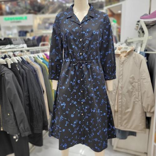 [크로커다일레이디]CLEFOP103 프린트 풀오픈 셔츠카라 스트링 원피스_KJ