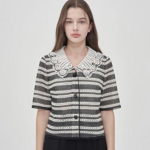 M 파리게이츠골프반팔티 NQC 521E2SR601_WH 여성 배색 하트 자카드 크로셰 반팔니트