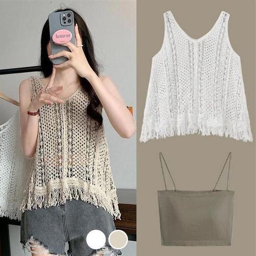 [신상오픈런]여성용 여름 크로셰 민소매 베스트