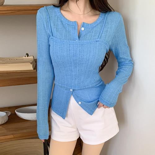 [셀럽하우스]수젠 QRJH3415 크롭탑 바지 세트 SH200313 긴팔티숙 U넥 슬림핏