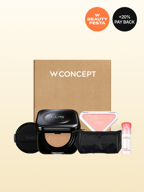 [클리오] [SET] 킬커버 파운웨어쿠션 기획+쿠션 리필 [증정] 블랙 삼각 파우치+프리즘하이라이터 002 페어리핑크