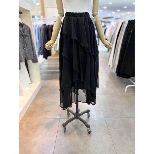 [클리지]허리 밴딩 캉캉 주름 쉬폰 롱 스커트 CQ3WSK06