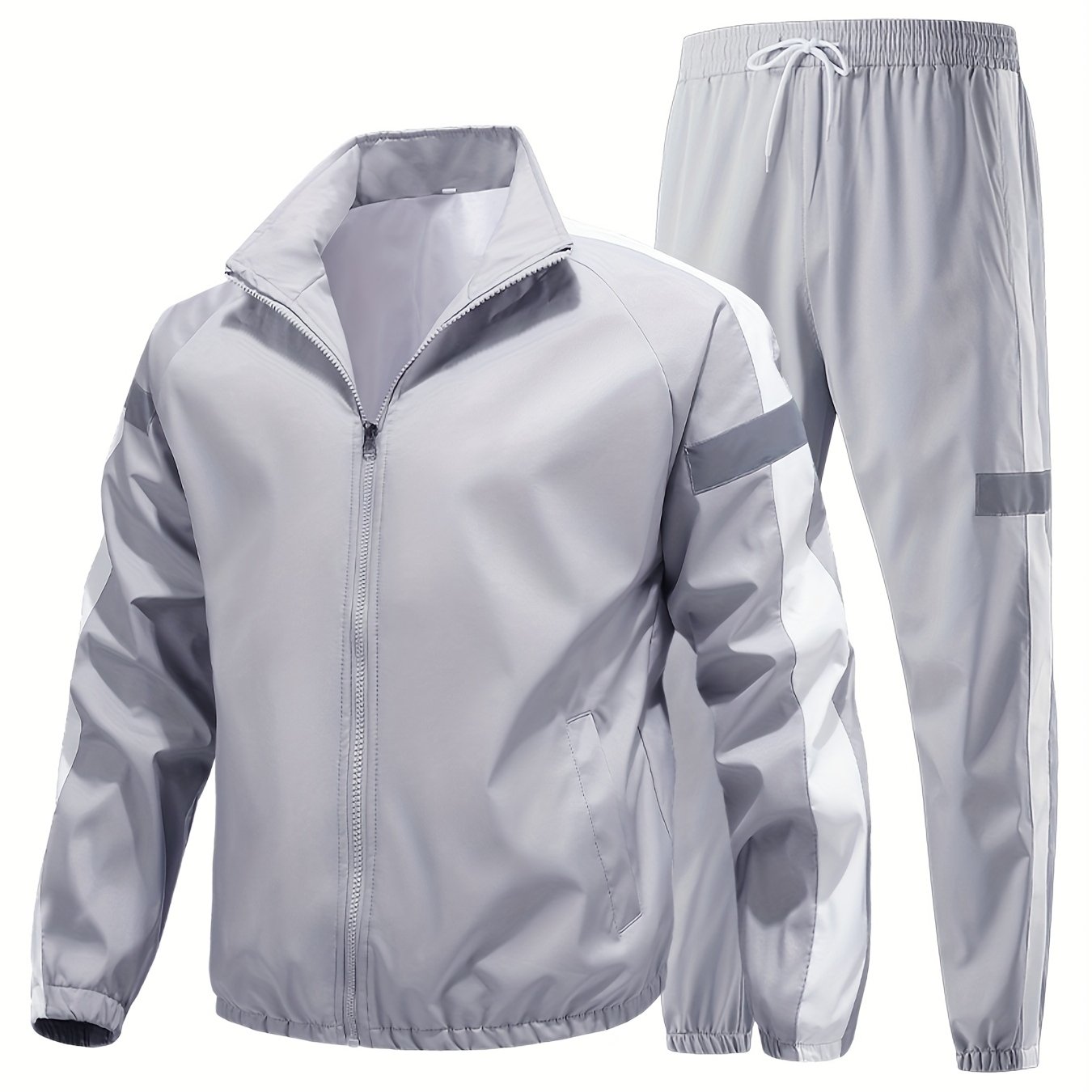 TEMU 남성용 운동 런닝 의상, 오픈 가디건 포함, 캐주얼 세트, 반사 , 2pcs 세트