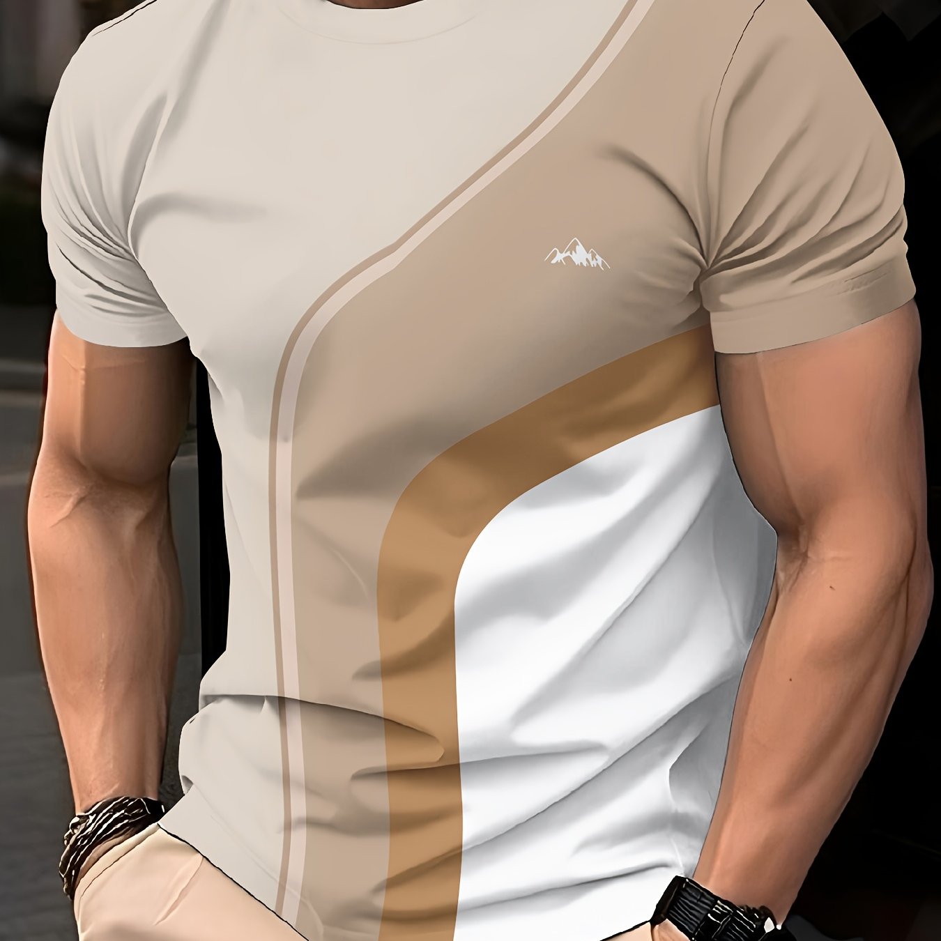 TEMU 남성용 이지 패션 캐주얼 프린트 라운드넥 베이지 티셔츠 남성 의류
