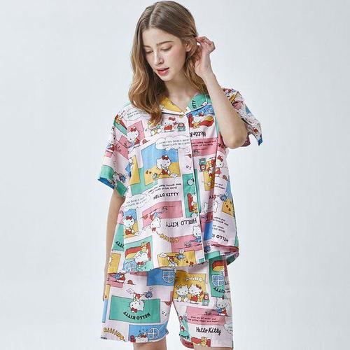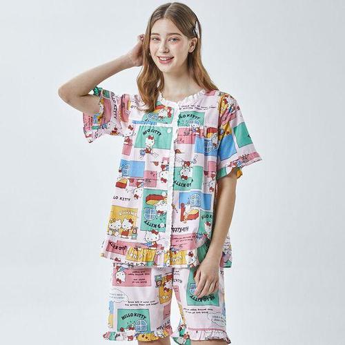 [알콩단잠]헬로키티 산리오 국내생산 여자파자마 잠옷세트 반소매 실내복 여름 홈웨어 상하세트