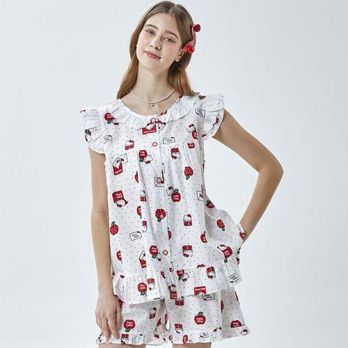 [알콩단잠]헬로키티 산리오 국내생산 여성잠옷 파자마 반팔 순면 여름 라운지웨어 실내복 홈웨어