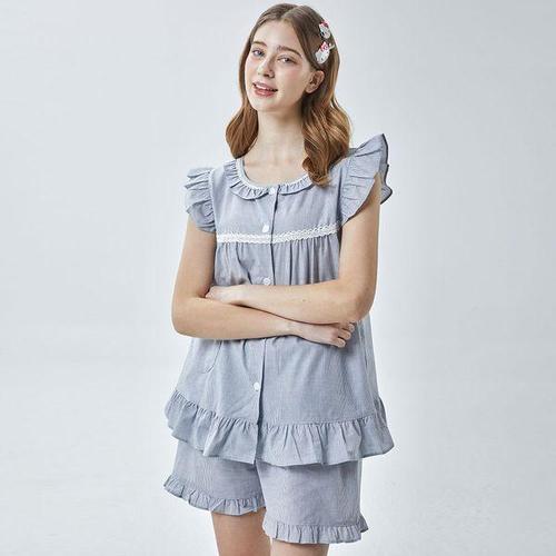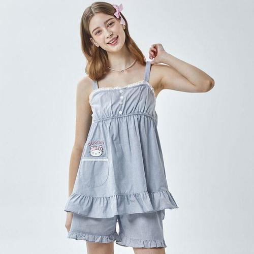 [알콩단잠]산리오 헬로키티 국내생산 여성잠옷 스트라이프 순면 민소매 홈웨어 실내복 파자마 상하세트