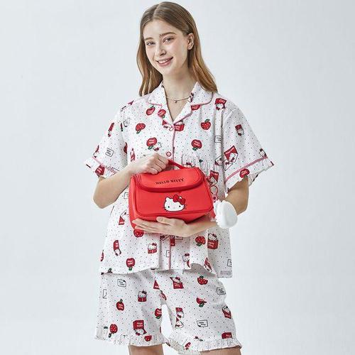 XCAO 헬로키티 산리오 러블리 파자마녀 학생 봄 여름 잠옷 실내복 투피스