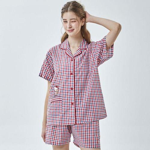 [알콩단잠]산리오 헬로키티 국내생산 여성홈웨어 실내복 잠옷 라운지웨어 파자마 반소매 순면 상하세트