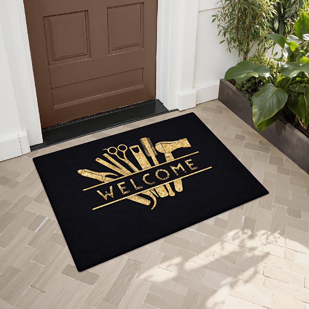 TEMU [제품] [플란넬 및 1cm 두께 스펀지 소재] 재미있는 현관 매트 | 골든 헤어 스타일링 도구 웰컴 패턴 프린트 매트, 침실, 주방, 식당, 욕실 등에 적합, 미끄럼 방지 및 세탁기 사용 가능, 다기능 플란넬 매트