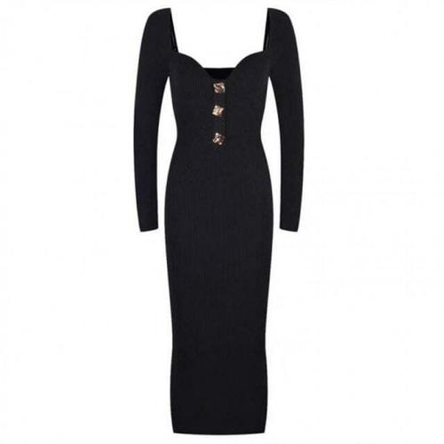 [오너클랜]인기상품 사각넥 시그니처 스냅 뜨개탑 롱드레스타이트핏 세미정장 듀얼컬러 [WFLETGM_260418]