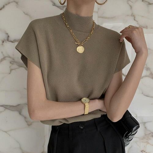 베이직 반목 캡소매 반팔 니트 HHD51 여자 티숙 하이넥 여성 WFJ39F7