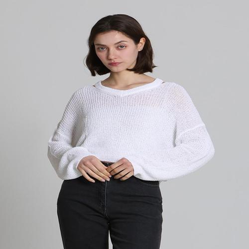 TEMU V넥 홀아웃 롱슬리브 솔리드 컬러 패션 니트웨어